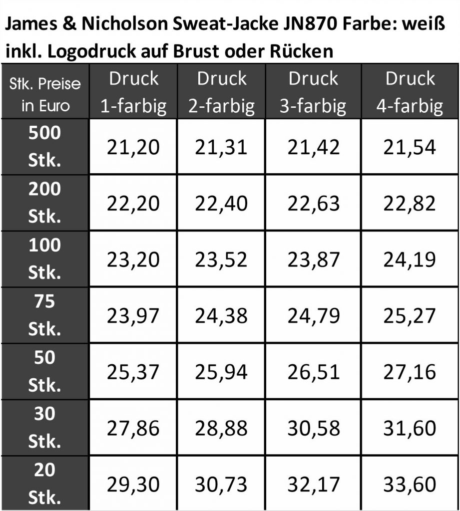 - Bei farbigen Sweatshirts muss immer ein zusätzlicher Druck und ein kleiner Aufschlag für farbige Sweatshirts mit eingerechnet werden