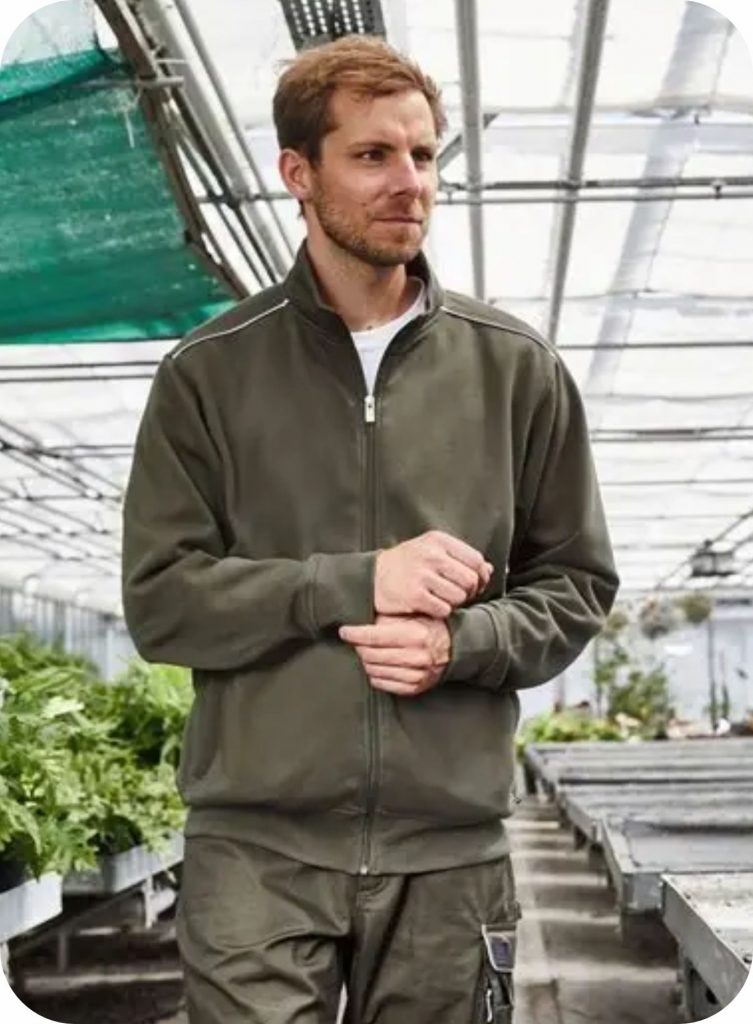 - Flauschiges Innenfutter Neutrales Größenlabel ohne Branding Saum und Ärmelbündchen aus 1x1-Elastan-Ripp-Strick Versetzte Doppelnähte am Armeinlass Leistentaschen Kragen aus demselben Material Robuster, hochwertiger Spiral-Reißverschluss in derselben Farbe mit Metallschieber und -schiebergriff Normale Passform Eingesetzte Ärmel Seitennähte Verdeckter Reißverschluss Angeraute Fleece-Innenseite